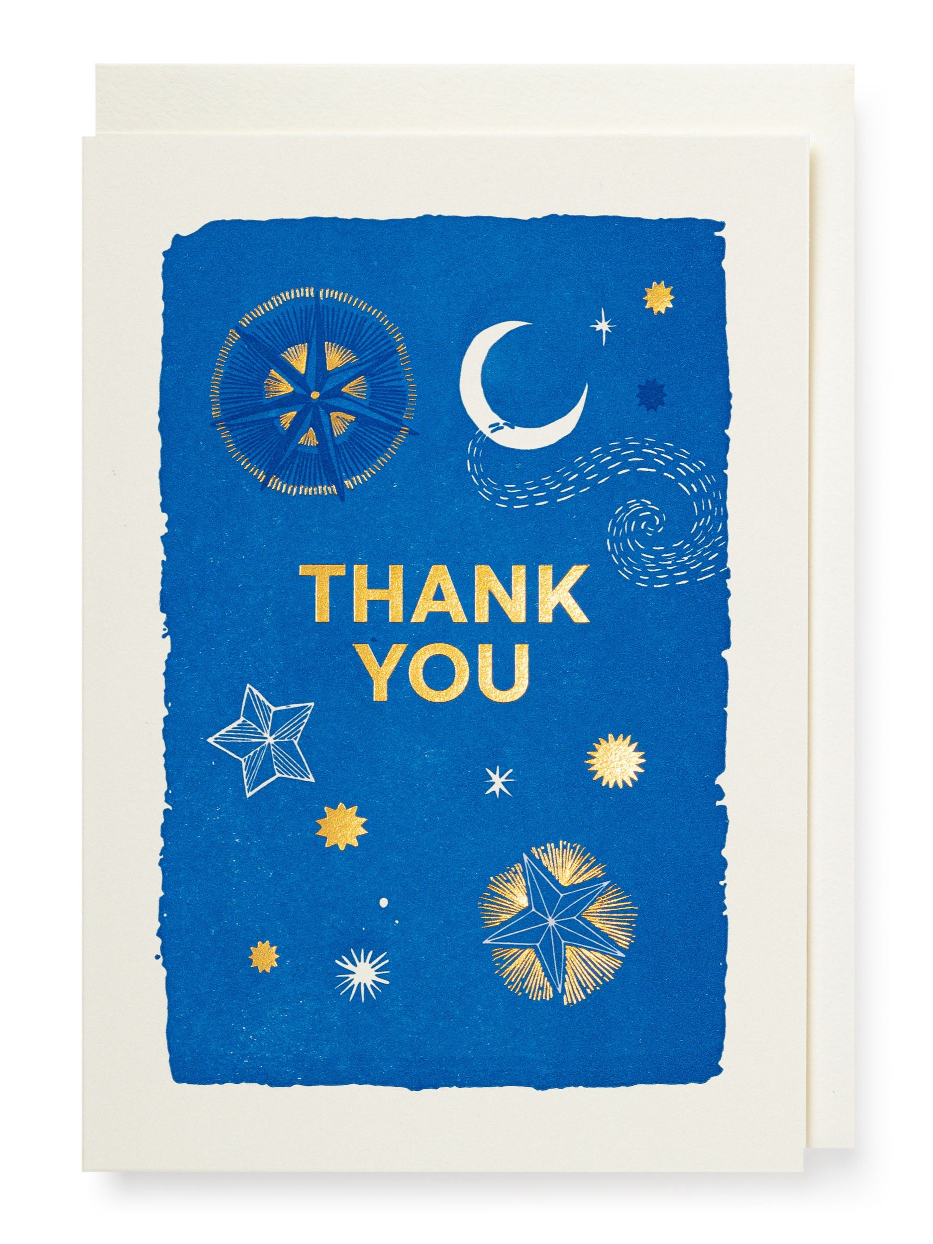 Ett drömskt, stjärnhimmel "Thank You"-kort, en del av den vackra samlingen av vår goda vän och begåvade konstnär Ariane Butto.