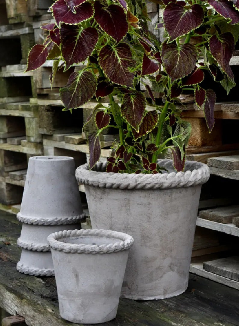 Det romerska imperiet var inspirationen till Emilia-krukan med signaturrepet som mjukt vilar på den övre kanten av denna höga, smala kruka. Sedan 1800-talet har den italienska staden Modena i regionen Emilia-Romagna i Italien varit känd för att tillverka denna typ av utsmyckningsrep för diverse dekorativa ändamål.