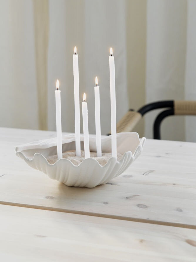 Skålen Shell L är en snäckskål i mindre format för alla tillfällen. Vackert vit passar den som godisskål lika väl som på nattduksbordet för smycken. Finns även i en mindre storlek.
