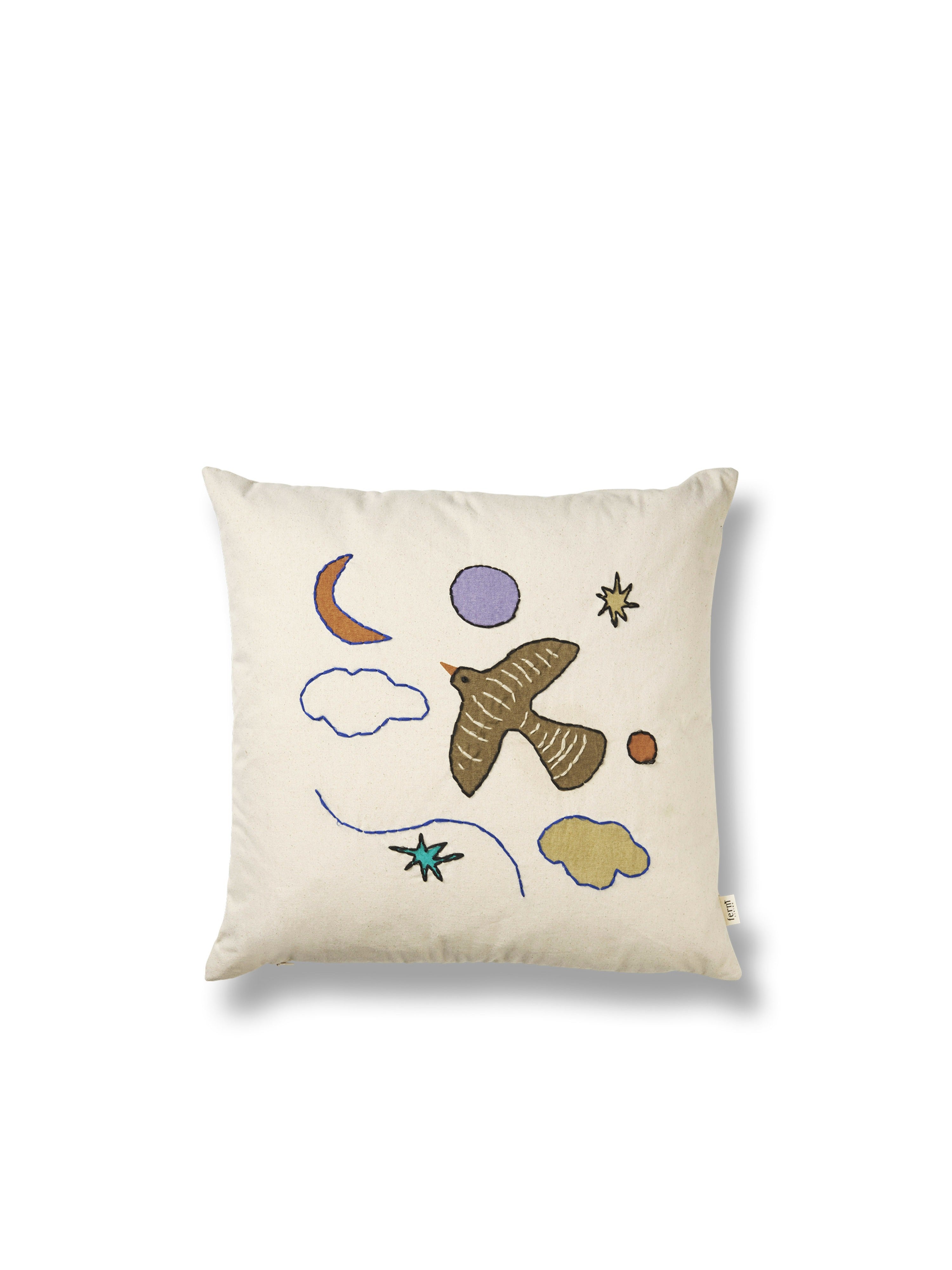 Material: 100% ekologisk bomull, handbroderad. Fjäder- och dunfyllning.