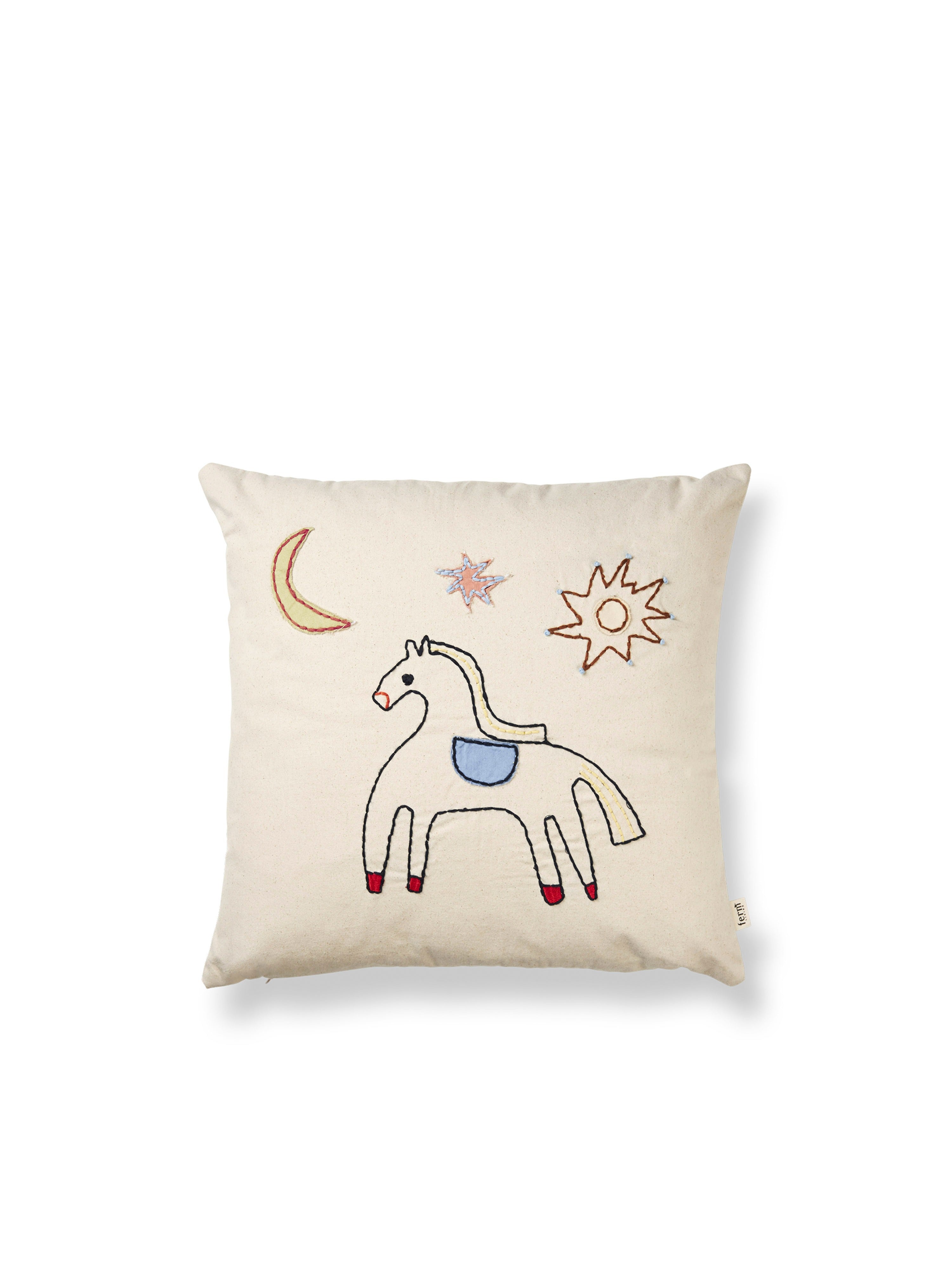 Material: 100% ekologisk bomull, handbroderad. Fjäder- och dunfyllning.