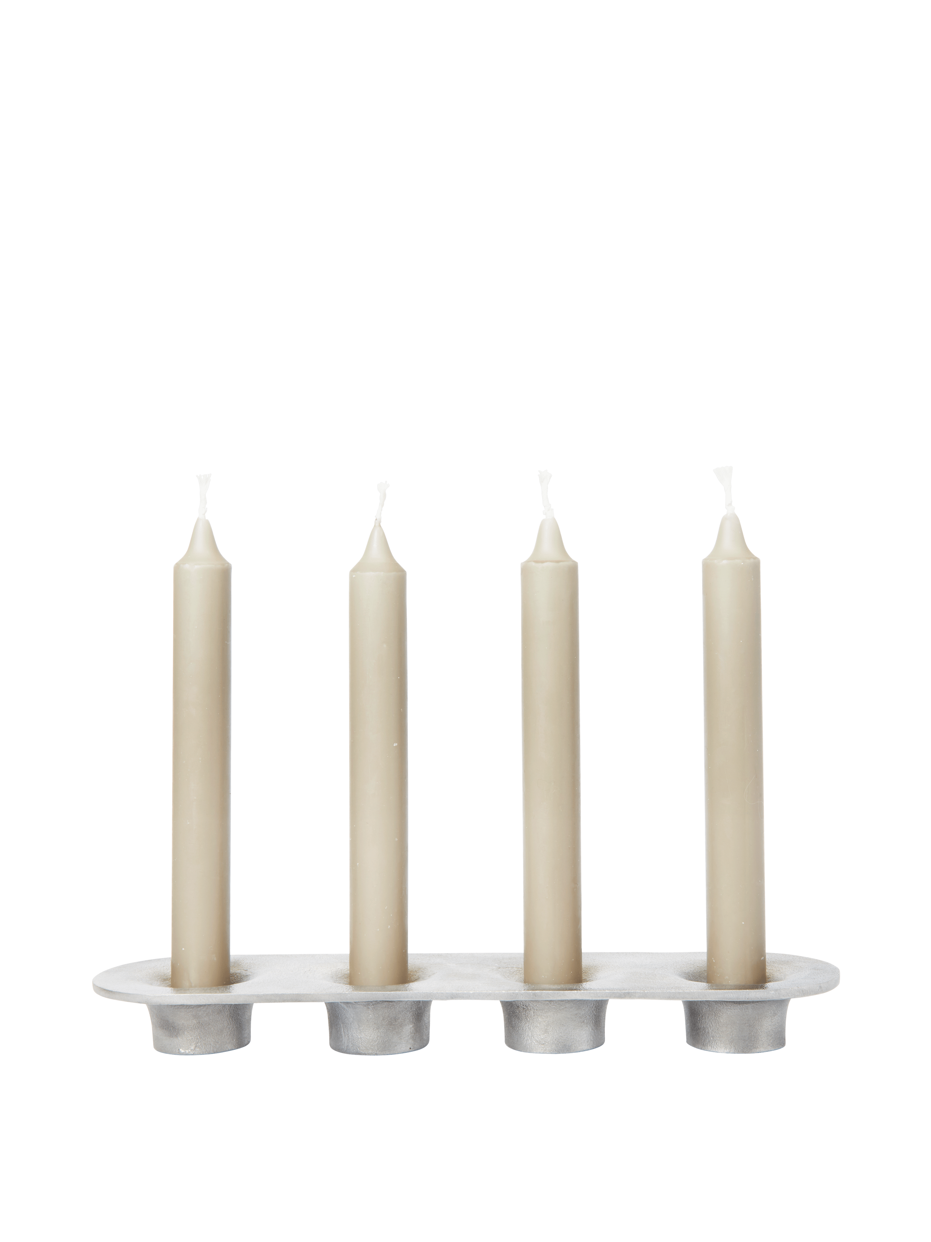 Ljusstaken Soothe 4 utmärker sig med sin diskreta elegans och avskalade design. Tillverkad av gjuten aluminium med en texturerad sandgjuten finish, rymmer den fyra ljus, vilket gör den till ett raffinerat alternativ till den traditionella skandinaviska adventsljusstaken. Med mjukt skulpterade former som delvis vaggar varje ljus, ger den en känsla av balans och lugn stillhet till både vardagliga ritualer och säsongsbetonade stunder.