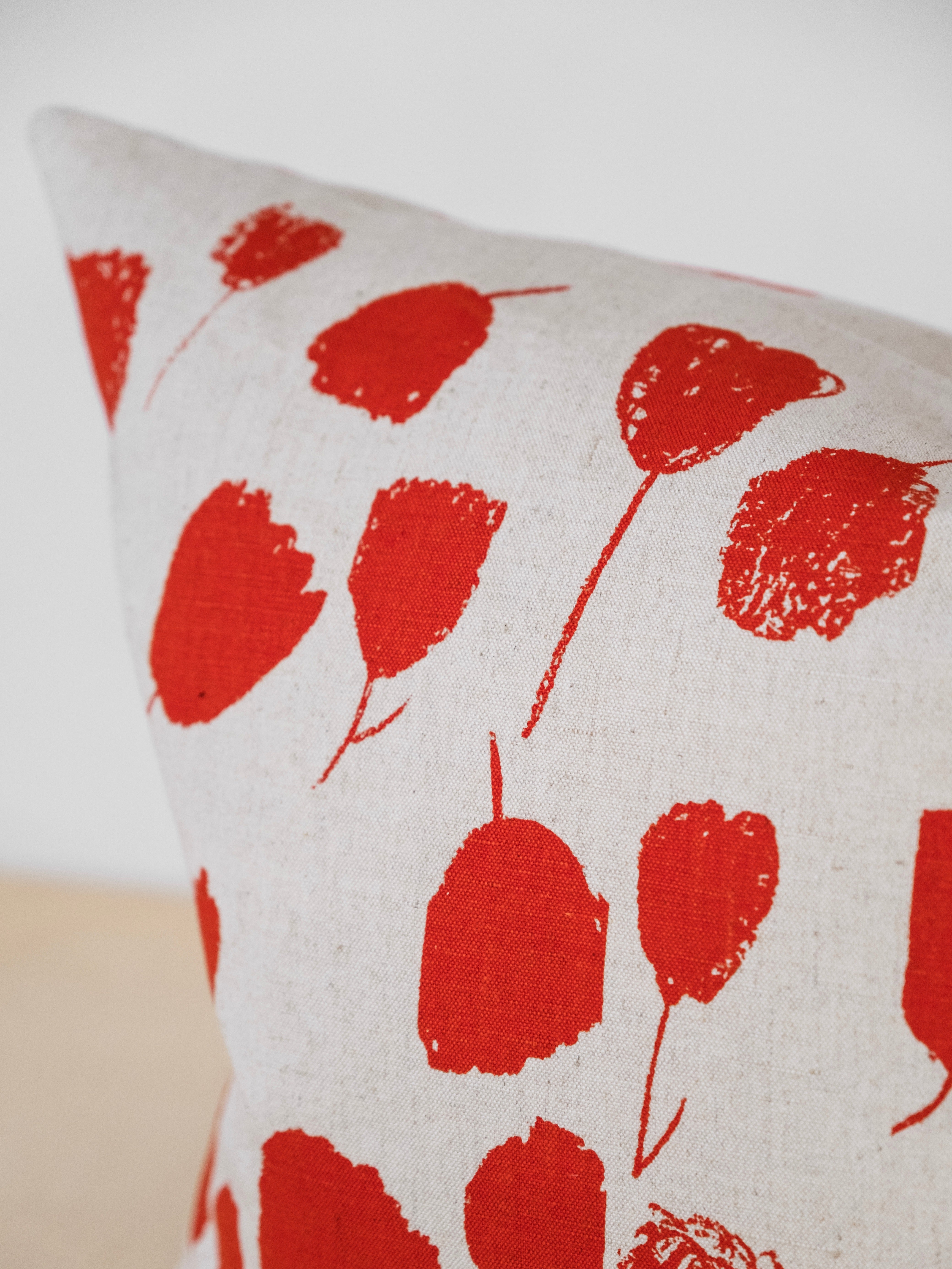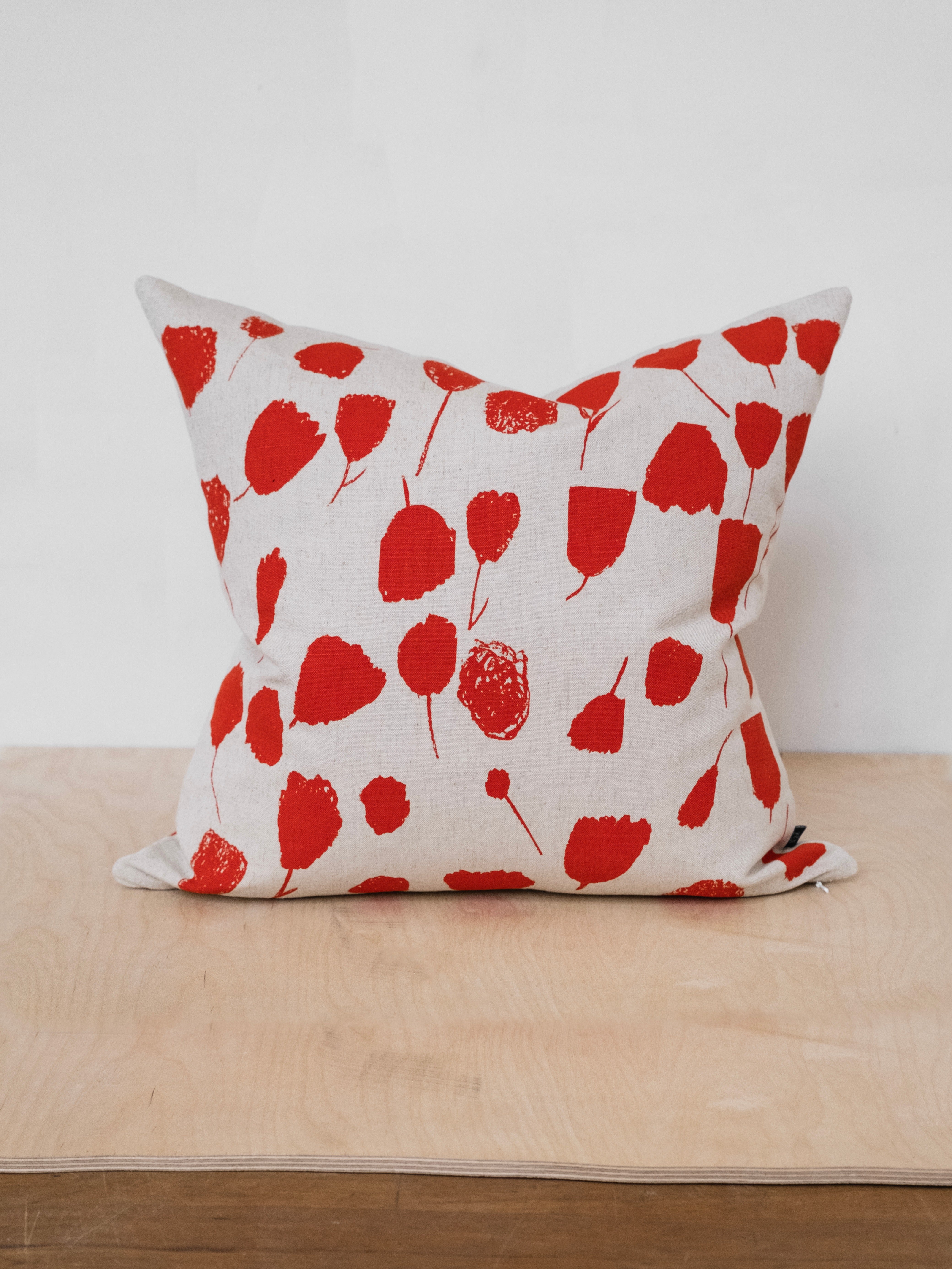 Kuddfodralet Bouquet i den vibrerande nyansen ”vallmoröd” gör oss glada. Mönstret designat av Isis Maakestad har snabbt blivit en FLD-klassiker och finns i kollektionen som posters, textilier och bricka.