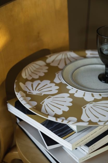 Snäckan, en symbol för resande. De är inte bara vackra för ögat, de är bärare av minnen och ett öra bort från ljudet av stranden, havet. Rymlig rund bricka i laminerad björkfanér med mönstret SNÄCKA formgivet av konstnären Emilia Ilke. Vi serverar gärna vår frukost eller fika på denna. Även fin som inredningsdetalj med oljor och kryddor på. Den svenska konstnären Emilia Ilke har skapat kollektionen Sea Sea Sea för Fine Little Day – en kollektion som hyllar havet och dess gömda skatter. Tillgänglig en tidsbegränsad säljperiod. Våra brickor är tillverkade i Sverige på ett ansvarsfullt sätt med björkfanér från Östersjöregionen. Miljövänlig för en grön framtid!