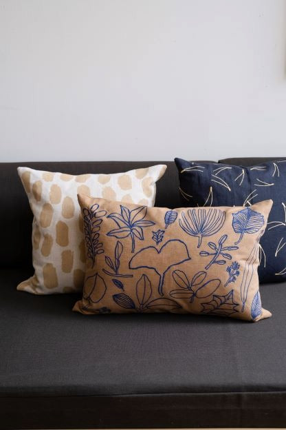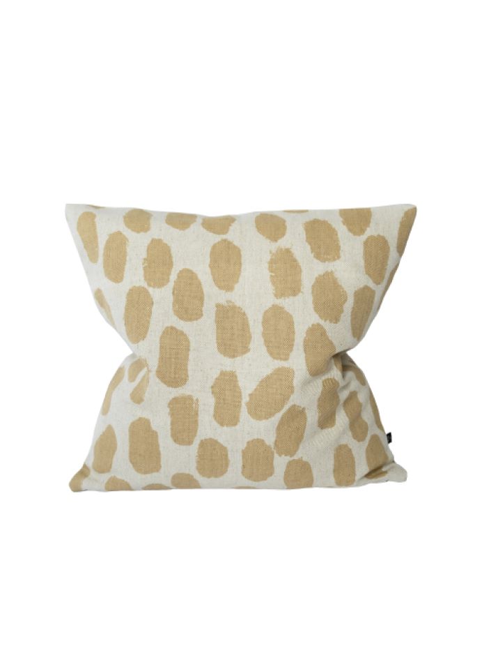 Kuddfodral i en mjuk och tjock oblekt linnekvalitet med vårt mönster DOTS i en härlig sandgul färg.