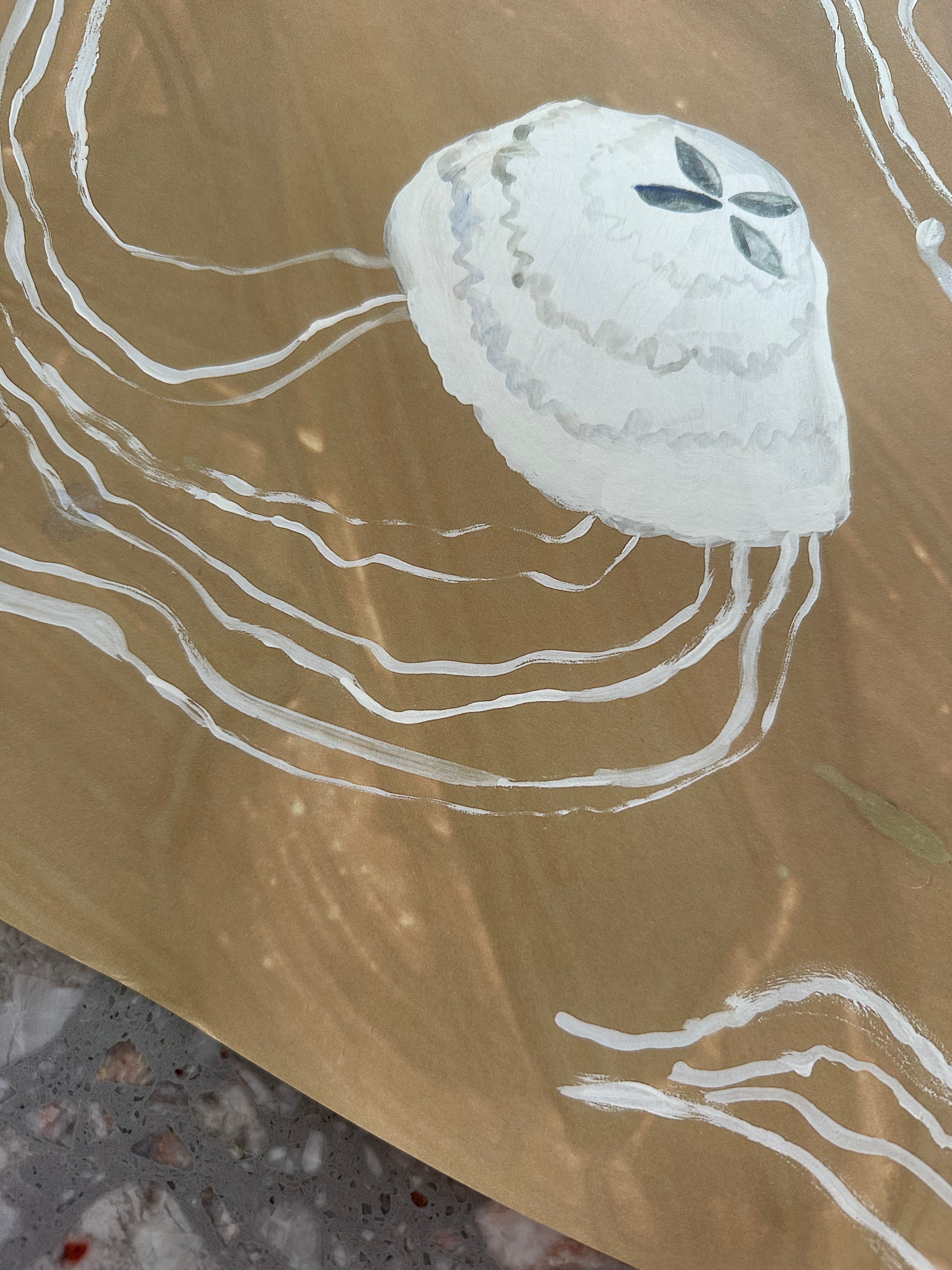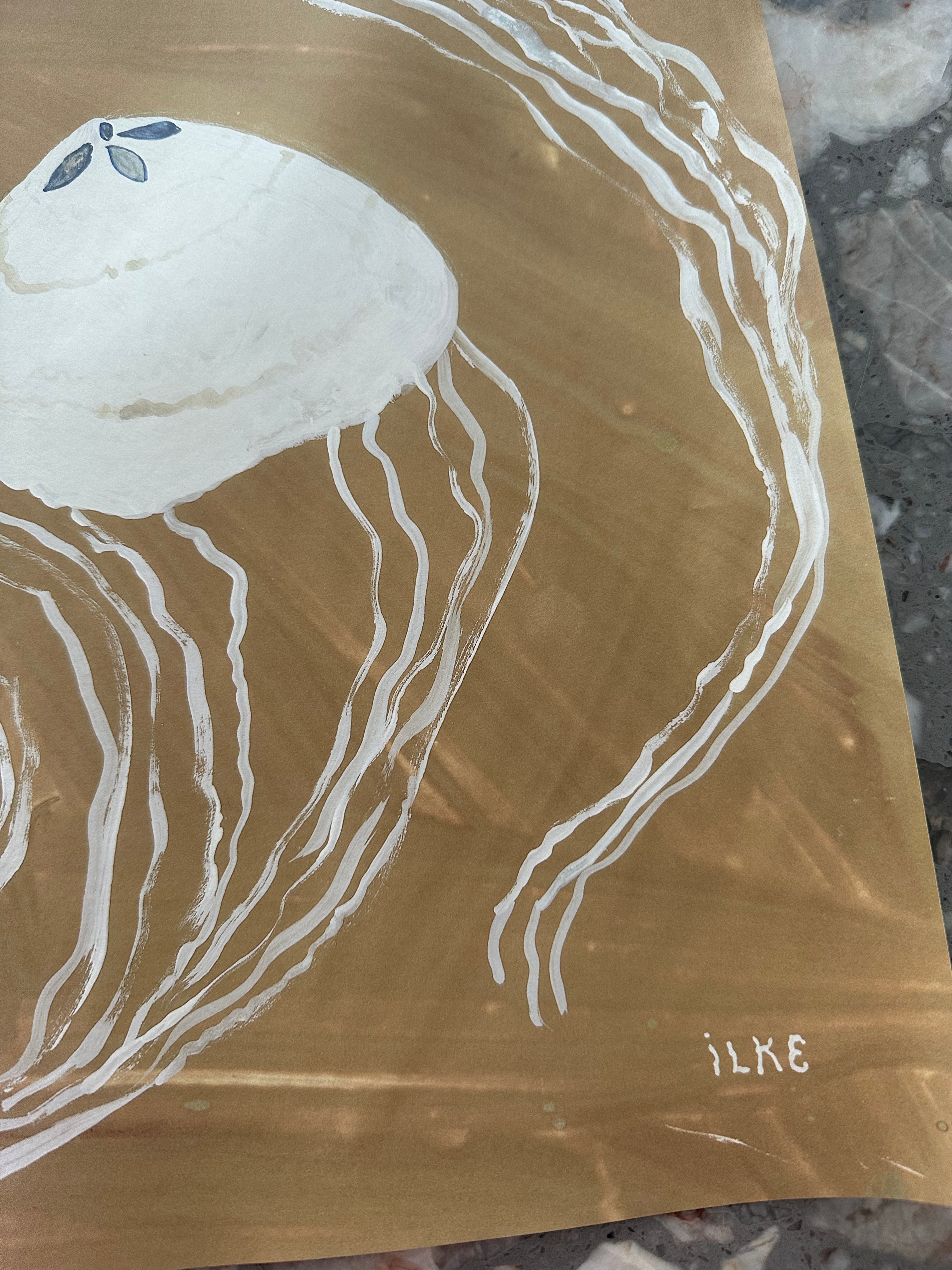 Ett slutsålt tryck designad av Emilia Ilke för Fine Little Day. Just nu finns ett begränsat antal till salu här hos oss. Den svenska konstnären Emilia Ilke har skapat kollektionen Sea Sea Sea för Fine Little Day – en kollektion som hyllar havet och dess gömda skatter. Varje tavla är numrerad och säljs till ett nedsatt pris eftersom det är någon liten skada på den, se bilderna. Postern har även små mönster som ser ut som vattenskador men som tillhör motivet, så fläckarna stör väldigt lite.
