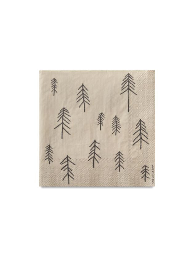 Vackert dukade bord ligger oss varmt om hjärtat. Mönstret Tall pryder dessa svensktillverkade servetter, som passar både till vardag och till fest. Förpackningen innehåller 25 st pappersservetter. En stor del av Fine Little Days mönstervärld är inspirerad av uttryck från den svenska naturen.
