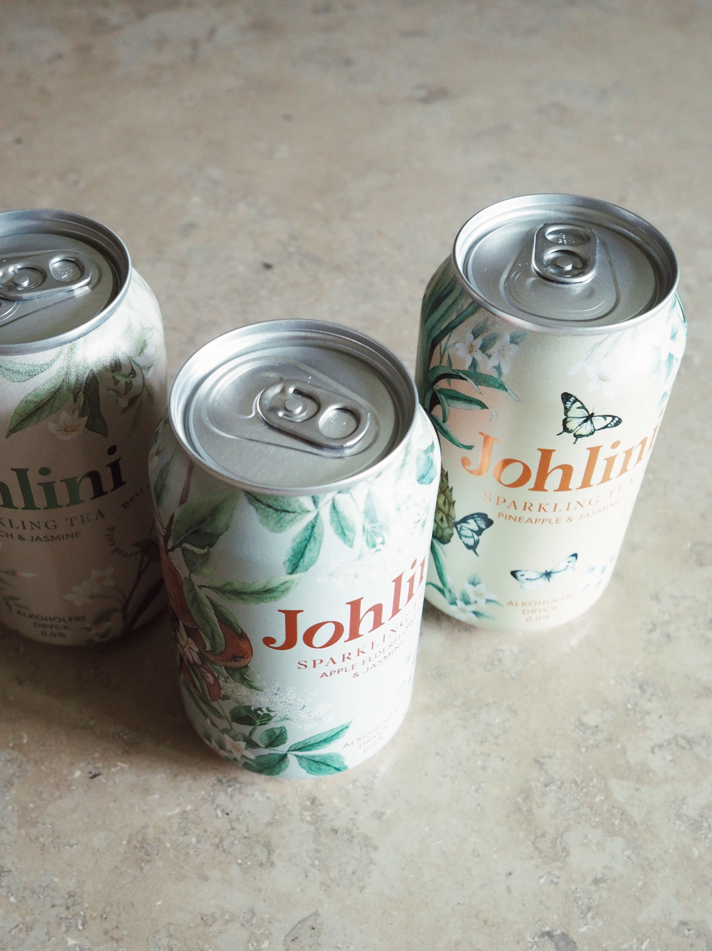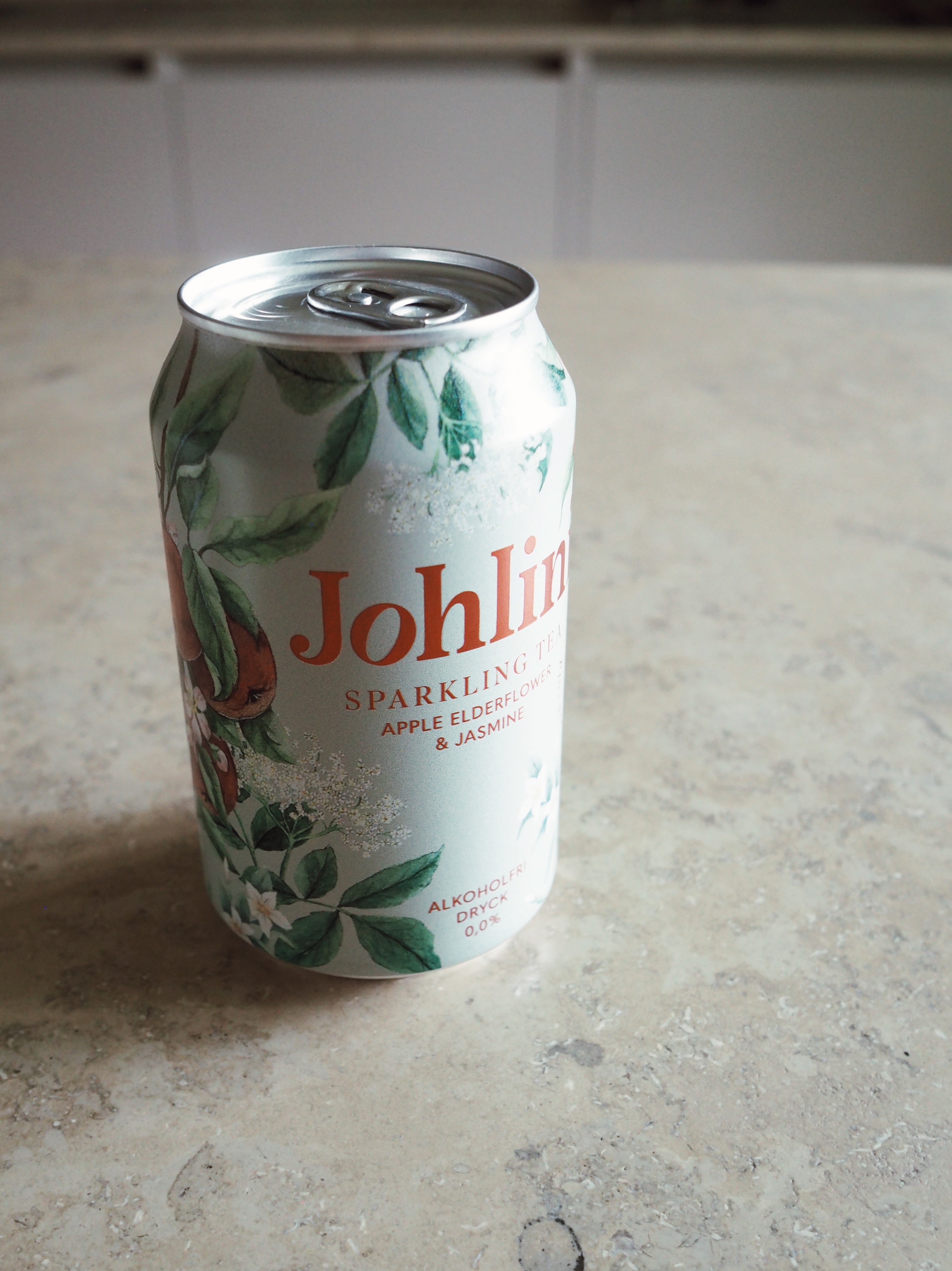 Johlini Sparkling tea, med smak av äpple, fläder och Jasmin. En alldeles ljuvlig alkoholfri, bubblig och törstsläckande dryck.