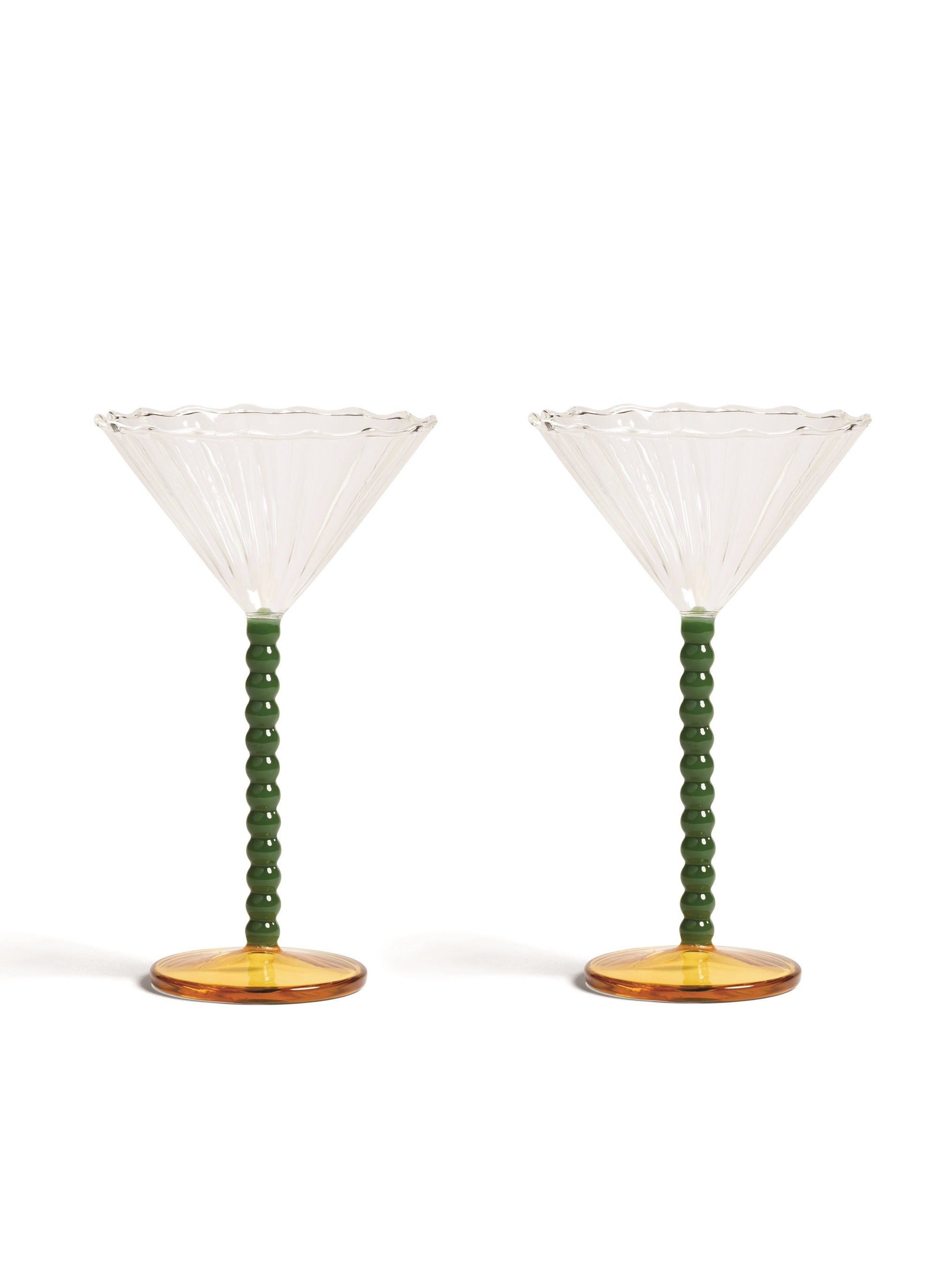 Det fantastiska utseendet på detta set med 2 perle coupe-glas gör dem lämpliga för alla speciella tillfällen. Coupéerna är gjorda av fint glas, med det färgade glaset och den subtila formen som ger dem ett unikt utseende. Dessa imponerande kupéer kan användas till champagne, vatten och andra drycker, såväl som till glass och desserter.