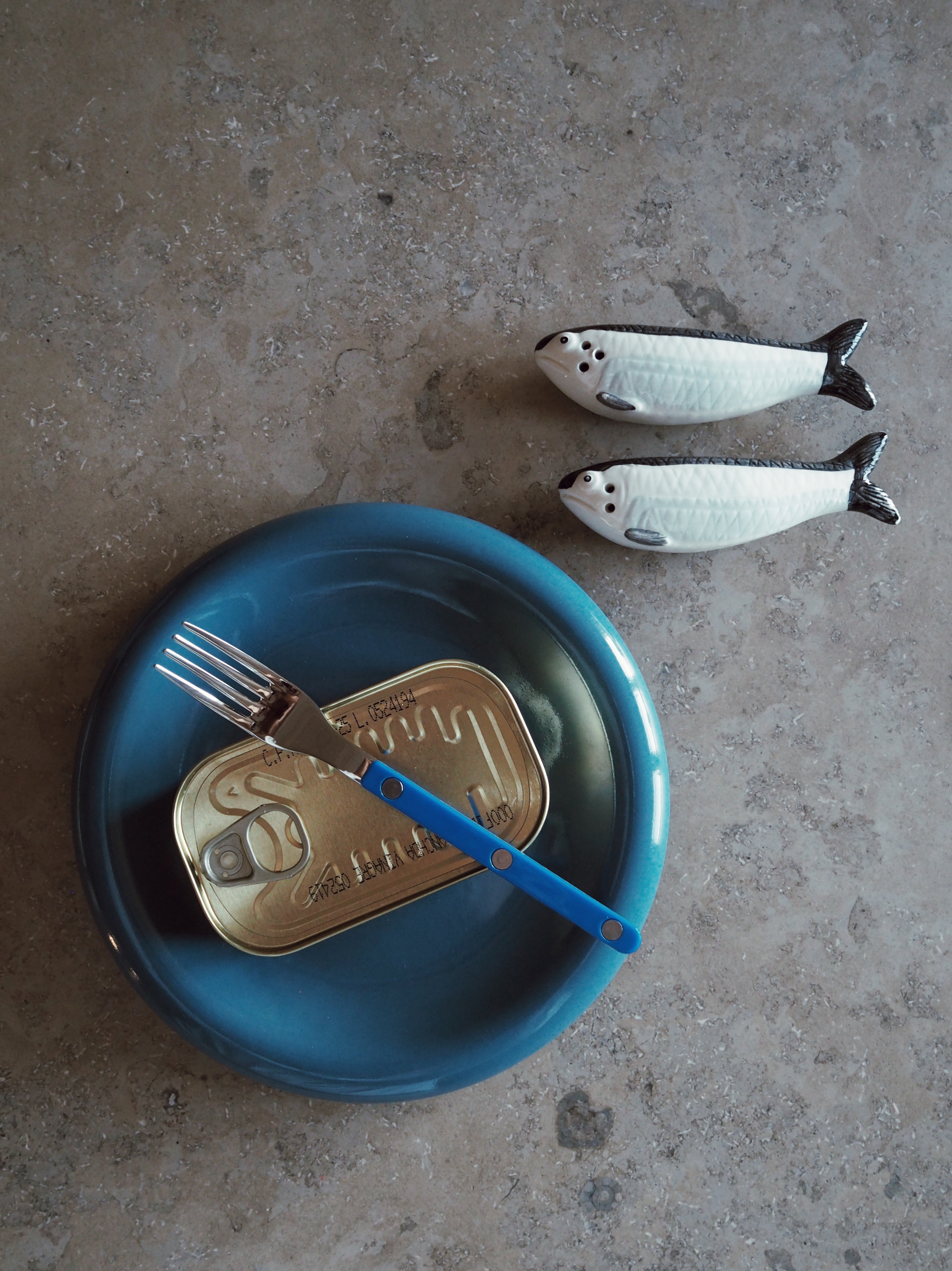 Salt och pepparkar i form av två sardiner. Enkel påfyllning i botten. Handmålad, variationer kan förekomma.