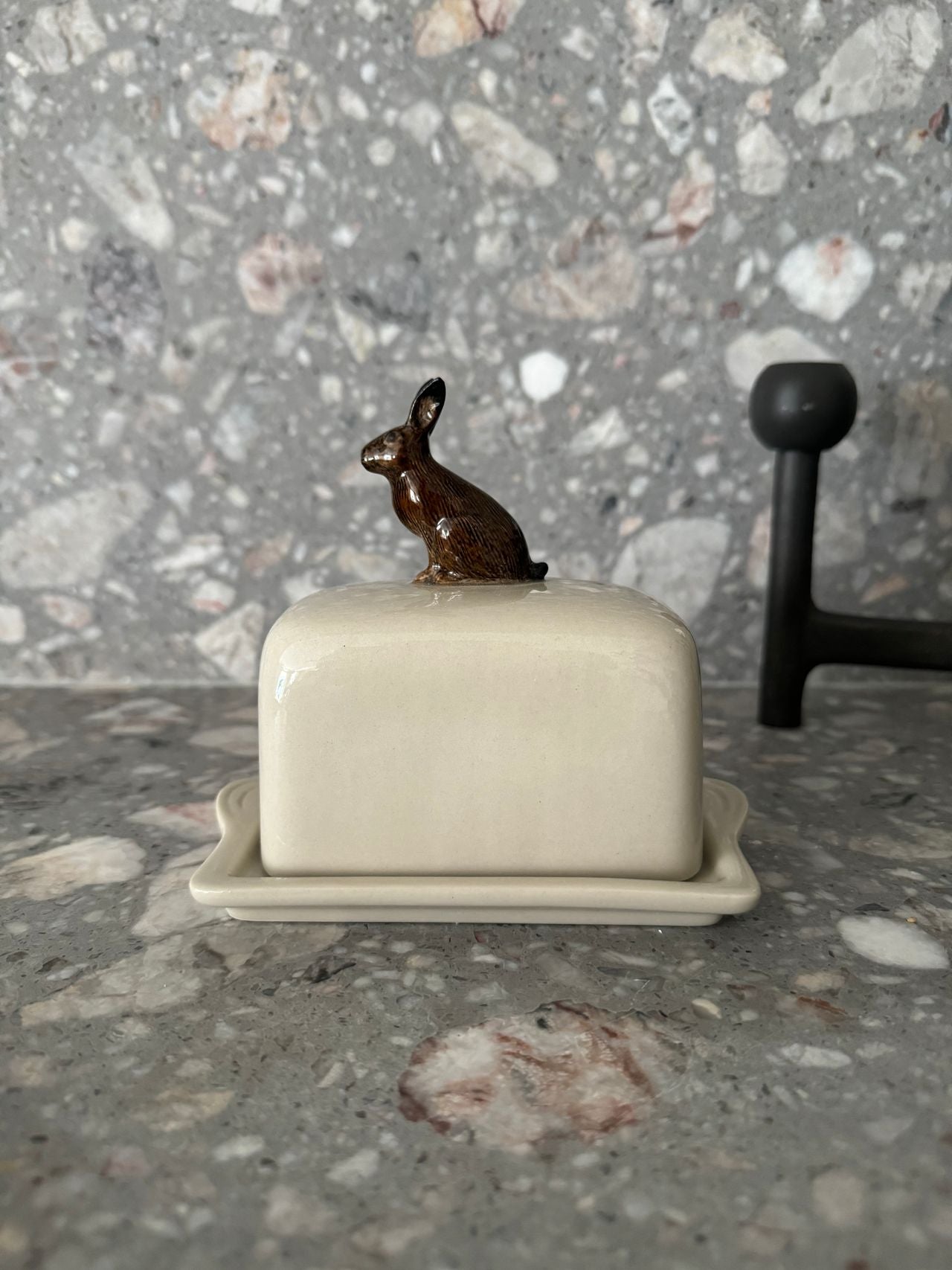 Handmålad smörbytta i keramik med raffinerade och autentiska detaljer.