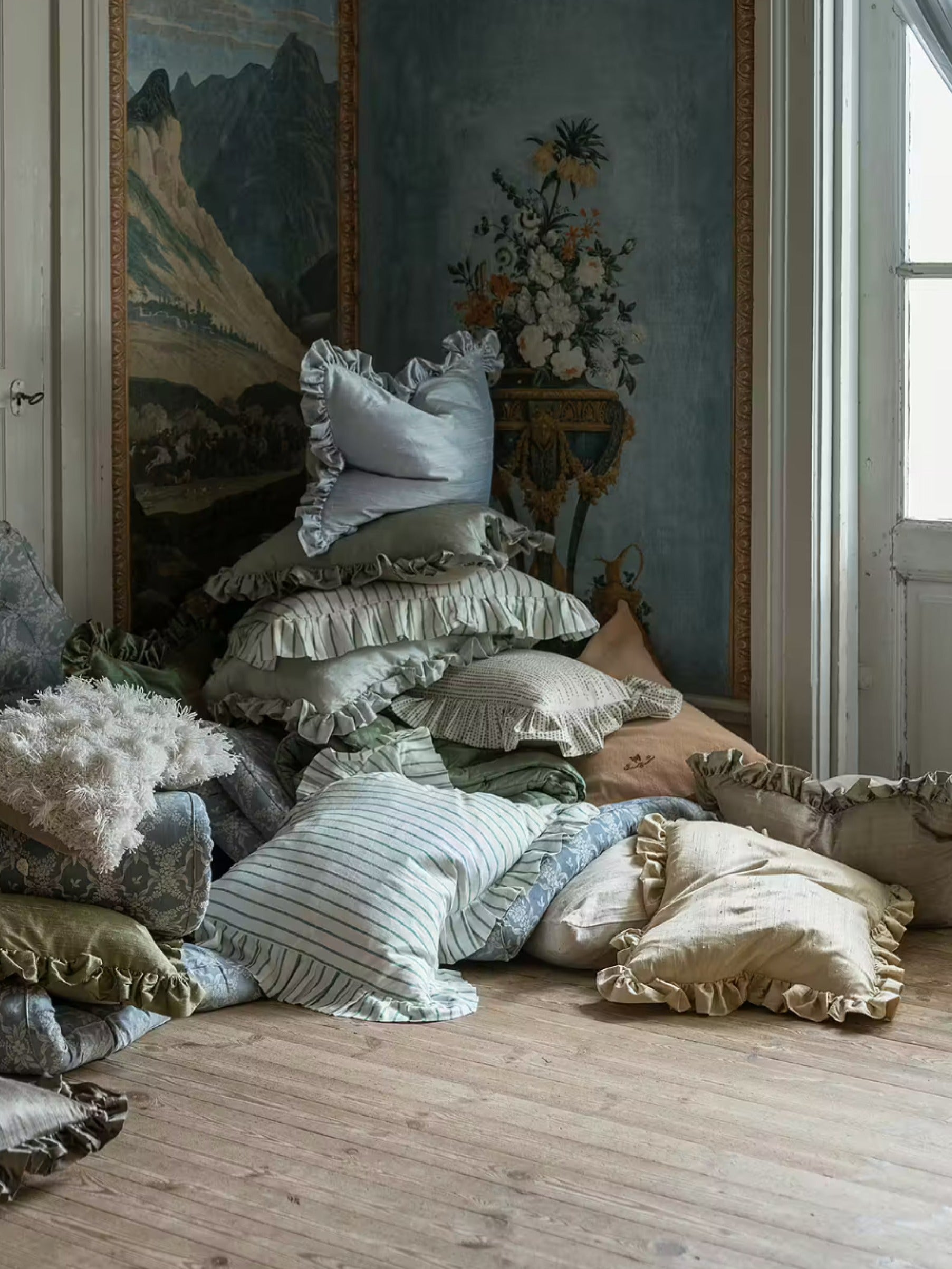 Säljs inklusive innerkudde av andfjäder som är Oeko-Tex® certifierad. Storlek: 65X48 cm + 10 cm volang. Material 50%bomull,50 % linne. Storlek: 50x70 cm