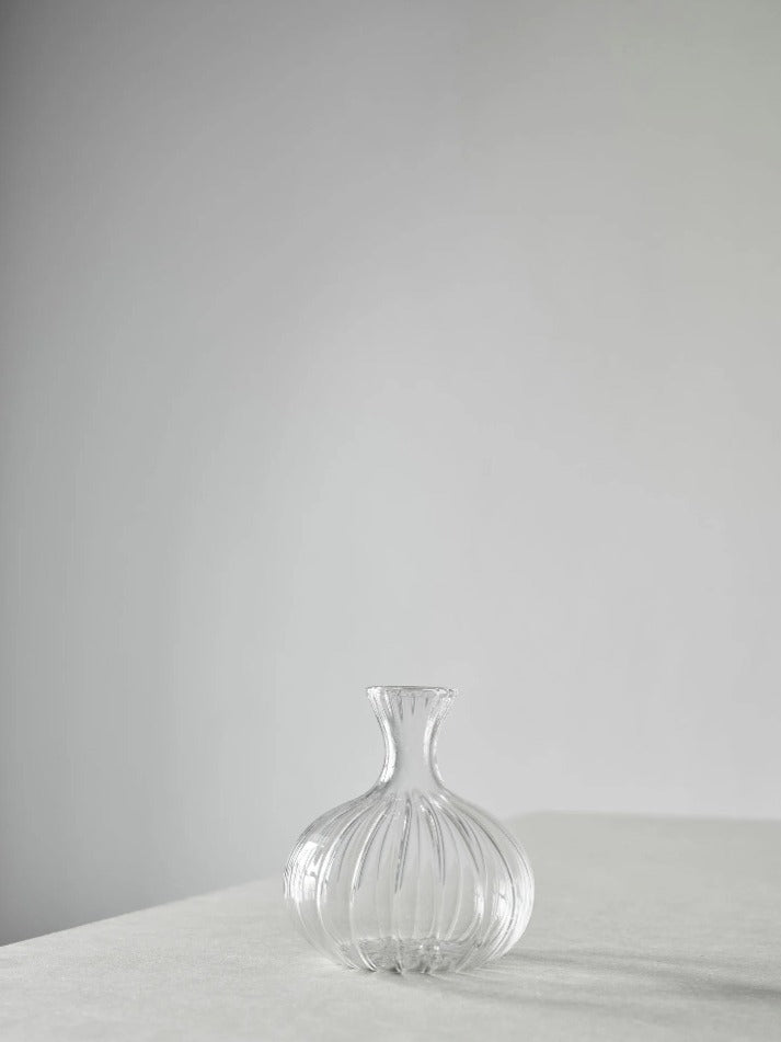 Como är en vacker serie med transparanta glasvaser. Dessa vaser har en räfflad struktur och är fina att sätta små snittblommor eller mindre kvistar i. Glasvaserna gör sig vackra både ensamma och i grupp.