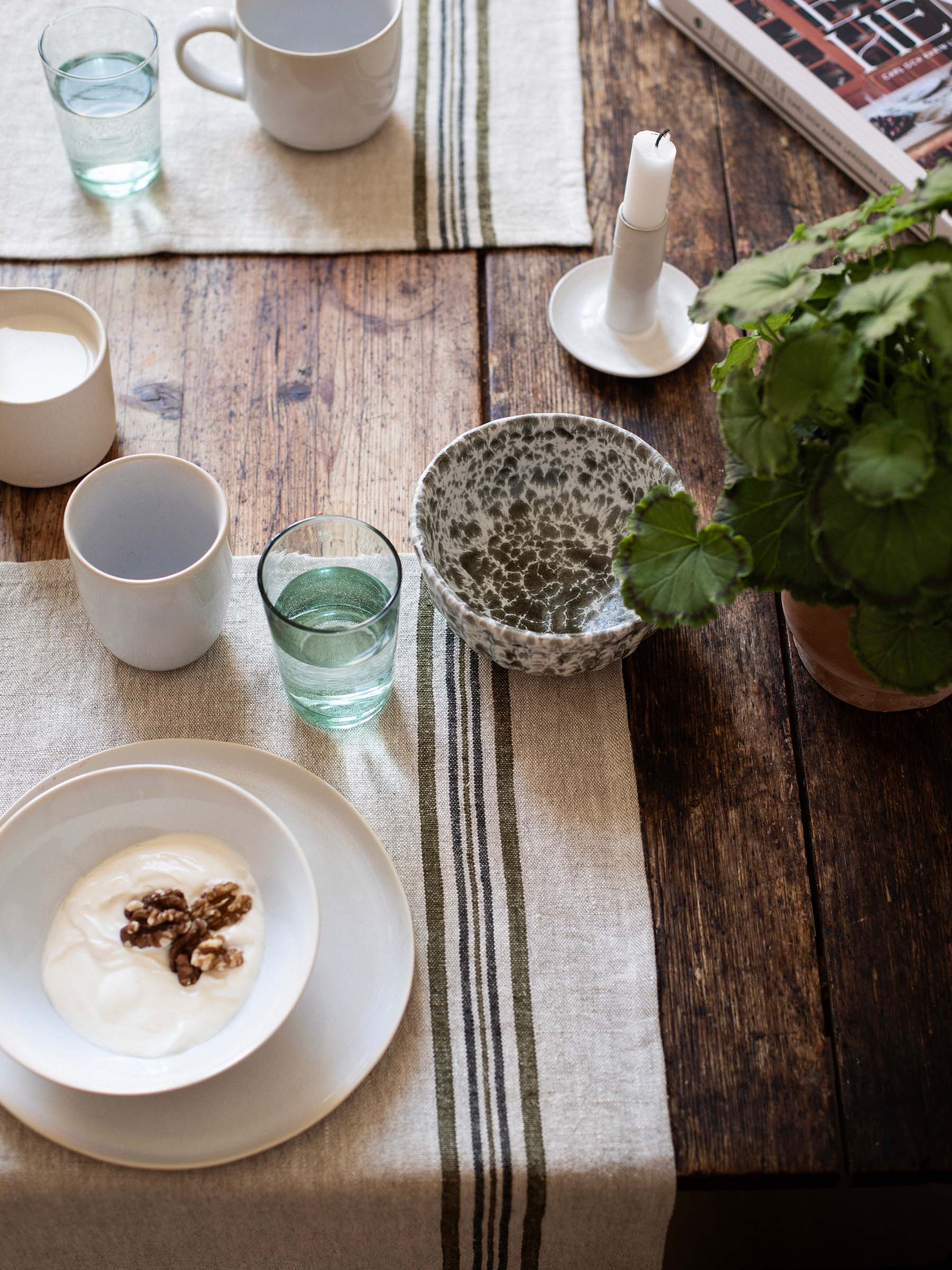 Material: Stengodslera, Stengods bränns under hög temperatur vilket ger hårda och tåliga produkter. Vi jobbar med olika glasyrer för att ge de olika produkterna unika utseenden. I alla våra stengodsserier används en reaktiv glasyr som när den appliceras på den brända leran reagerar med den höga temperaturen och ger varje del en unik karaktär vad gäller färg och textur. Det gör att dessa serier bidrar med en levande och välkomnande känsla när du dukar med dem.