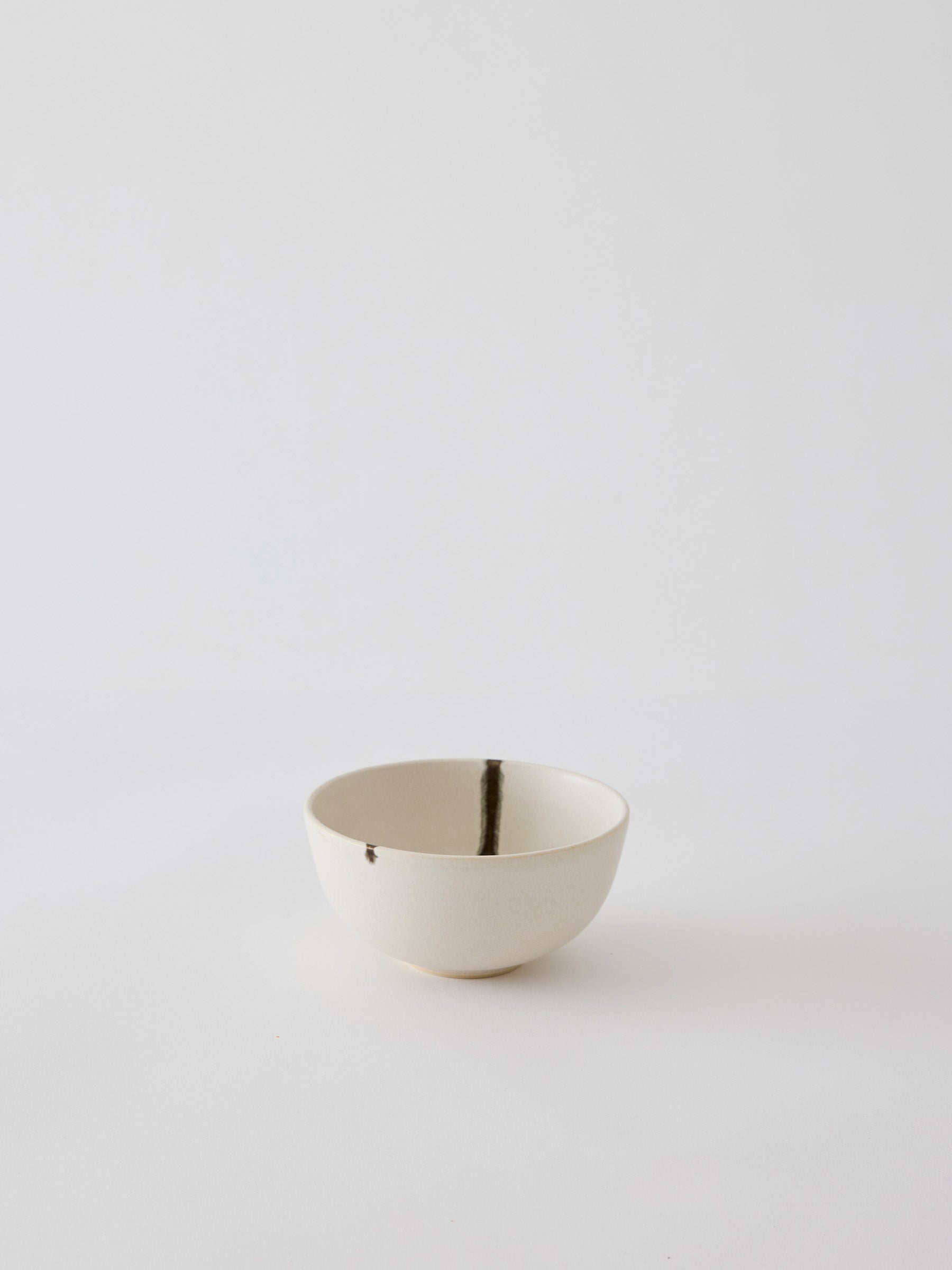 Handgjord serveringsskål från Toledo-serien i vit färg med en grön/svart inbränd linje som ger ett fint mönster i stengodset. Skålen är perfekt för att servera såser, snacks eller andra tillbehör. I Toledo-serien finns också en lite större skål.