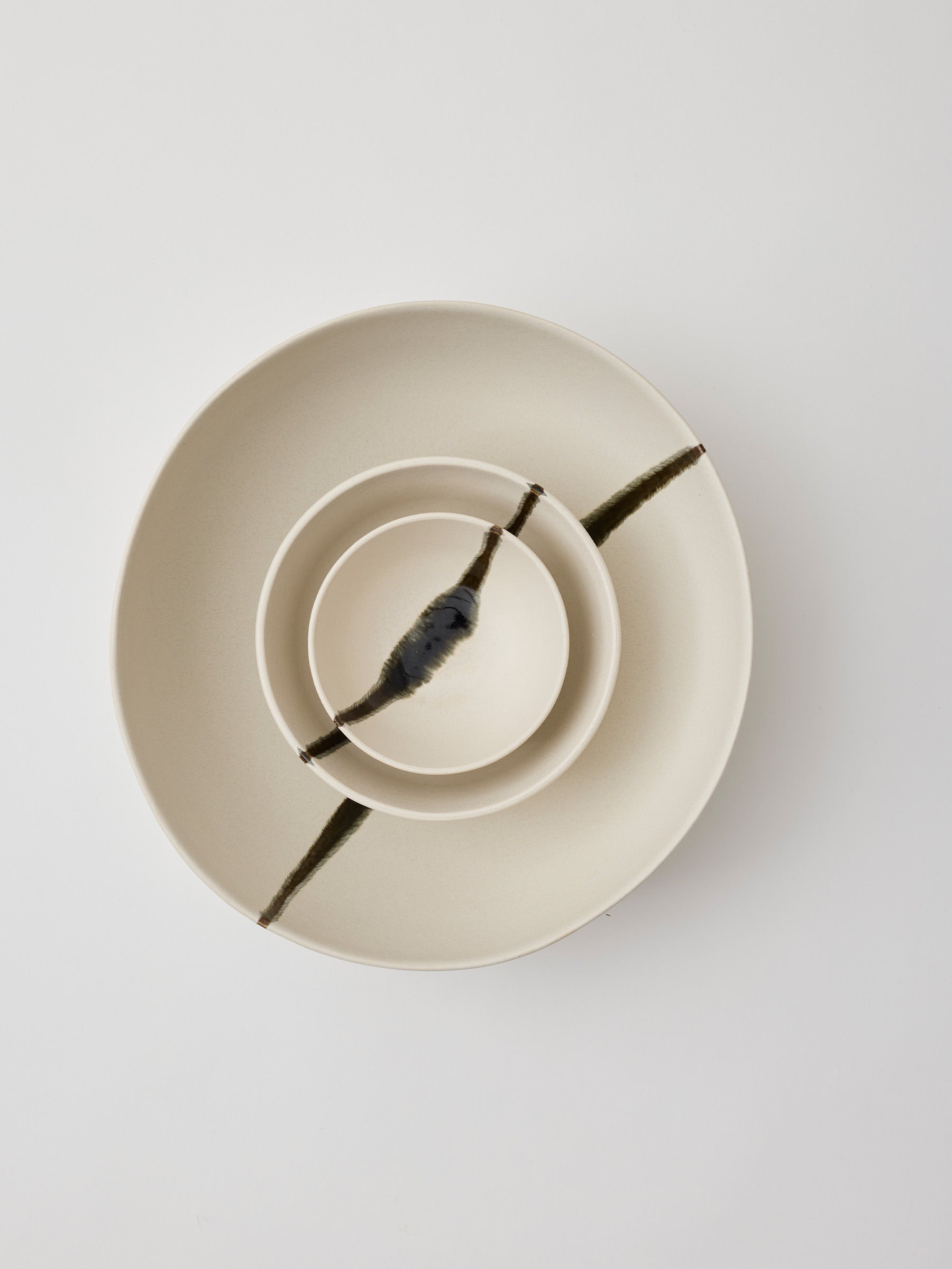 Material: Stengodslera, Stengods bränns under hög temperatur vilket ger hårda och tåliga produkter. Vi jobbar med olika glasyrer för att ge de olika produkterna unika utseenden. I alla våra stengodsserier används en reaktiv glasyr som när den appliceras på den brända leran reagerar med den höga temperaturen och ger varje del en unik karaktär vad gäller färg och textur. Det gör att dessa serier bidrar med en levande och välkomnande känsla när du dukar med dem.